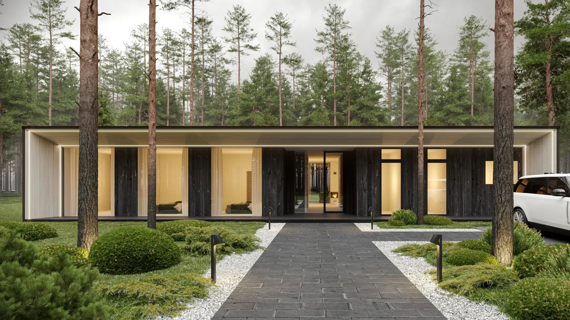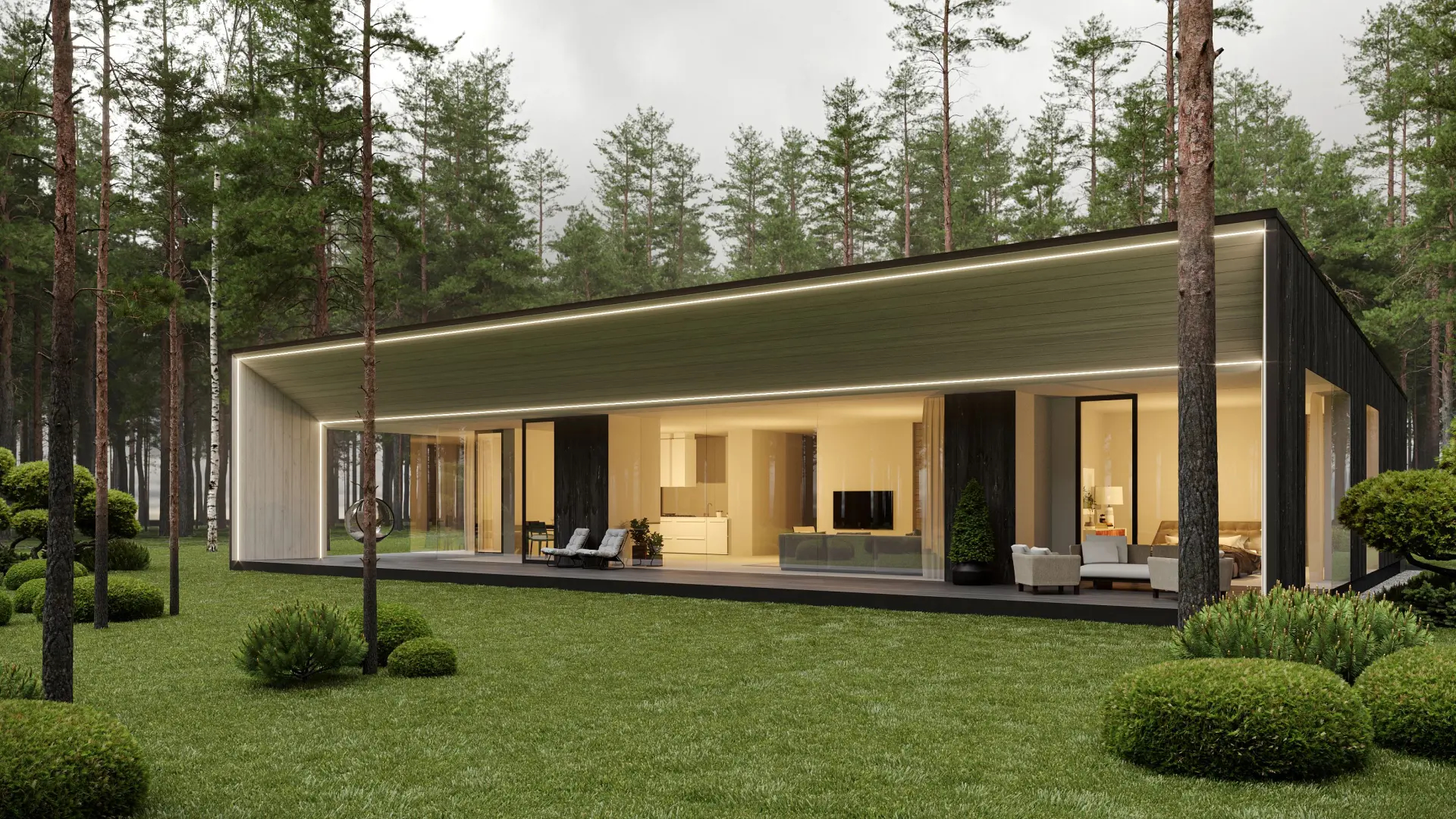 Стеклянные фасады открывают вид на озеро и позволяют сделать особый акцент на видовых характеристиках объекта.